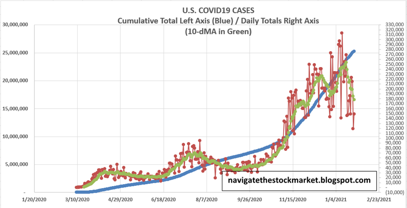 are on the right side of the graph with the 10-dMA of daily numbers in Green.
