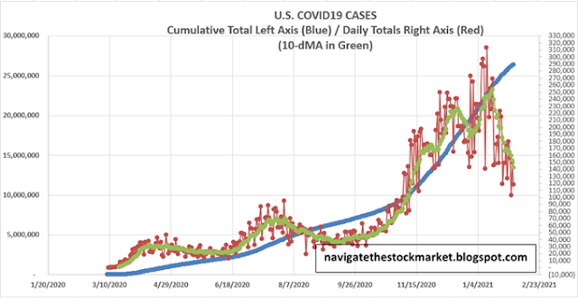 are on the right side of the graph with the 10-dMA of daily numbers in Green.