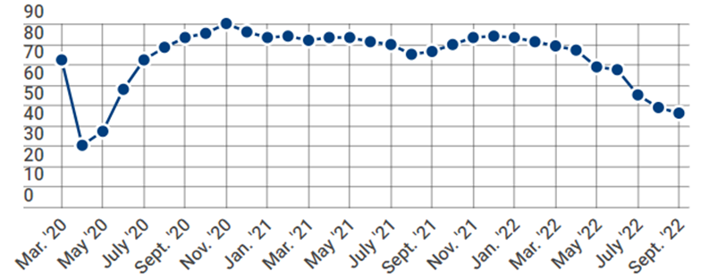 “Builder sentiment fell for the ninth consecutive month in September as elevated interest rates, persistent building material supply chain disruptions, and high home prices continue to impact housing affordability, according to the NAHB.” Story at...