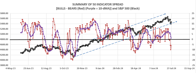 The Bull/Bear, 50-Indicator spread (Bull Indicators minus